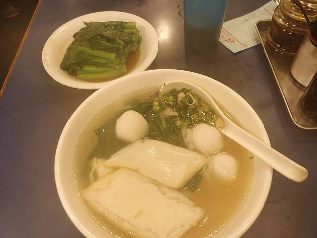 鱼旦河粉:QQ的鱼旦和细滑爽口的河粉是最佳搭档。还吃到了老板送的炸鱼片头,外表香酥内里软嫩,味道担得起招牌二字。