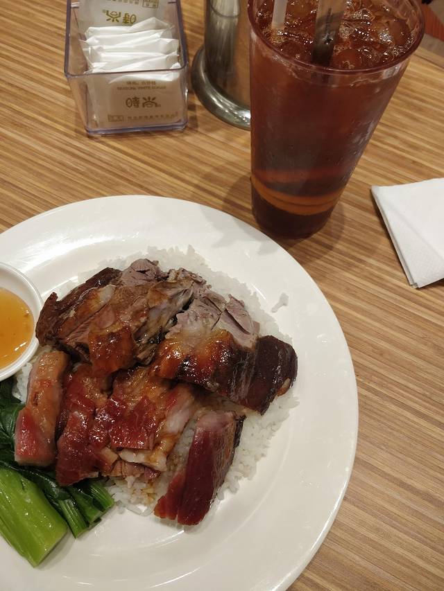 点一份烧鹅叉烧双拼,再来一杯冻柠茶解解腻。
