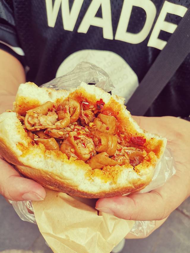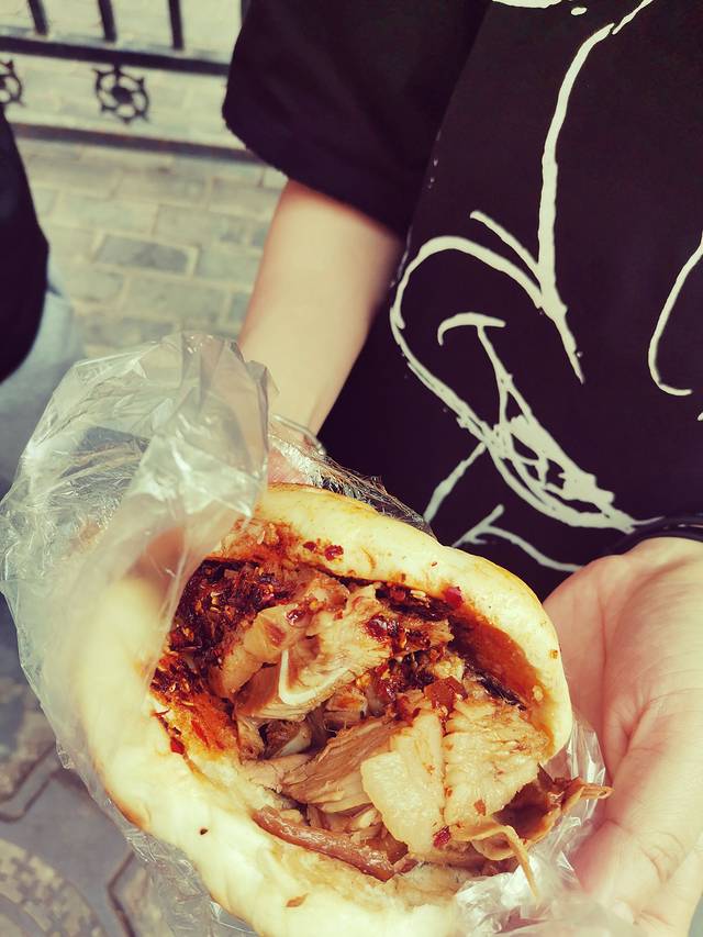 虽然夜市还没出摊,但是我来这还有一个目的,就是打卡路见不平来碗FAN推荐过的十八味的肥肠夹馍和卤肉夹馍,一定要放辣椒,太香了!不要怕辣,这儿的辣椒是增香的,一点都不辣。(友情提示:路见不平来碗FAN录节目时十八味卤肉店还在位于正宁路小吃夜市中断的市场里,现在已经搬到正宁路小吃街的东口了,就是“放哈”的对面)