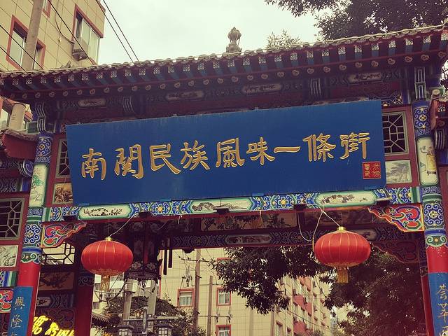 从正宁路小吃夜市东口出来右转到正宁路,走到甘南路左拐一直走过酒泉路天桥不远就到了兰州第二条小吃街“南关民族风味一条街”。(从天桥上可以看到南关清真大寺)