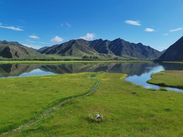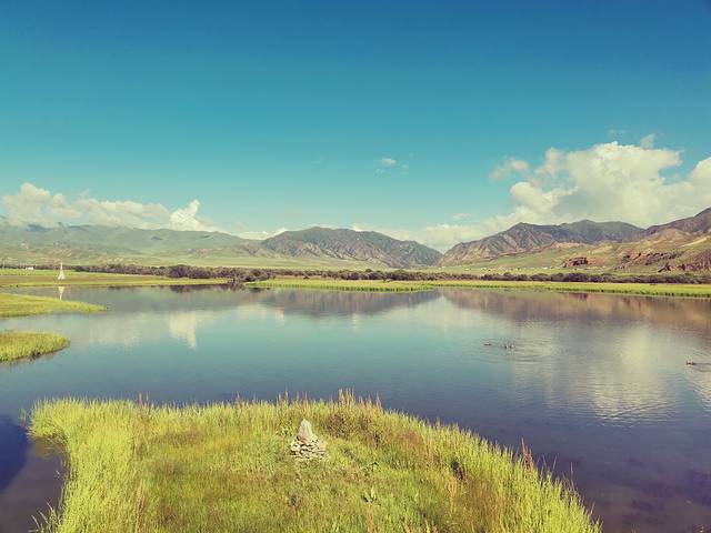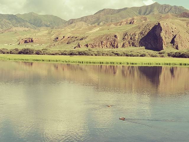 离开夏河县城不久就到了桑科湿地,它就位于路的右手边,有专门的停车场收费。桑科湿地是桑科乡达久滩(“跑马滩”之意)草原的一部分,公园四周群山环抱,中间是开阔平坦的高山草原。桑科草原有大 夏河 水从南到北徐徐流过,水草丰茂,风景比较好。随手一拍就是大片(手机拍的)。
