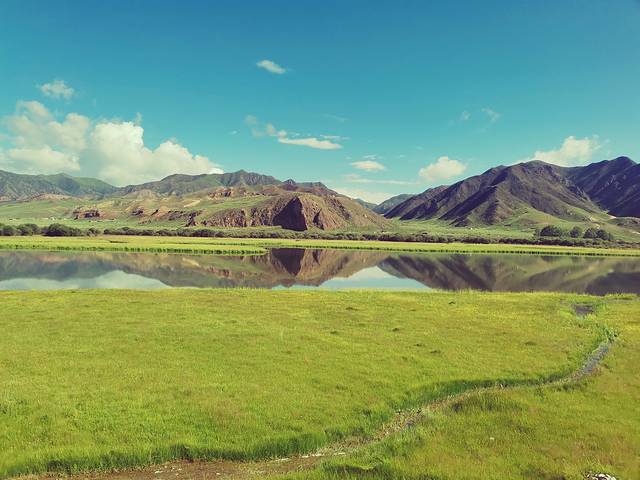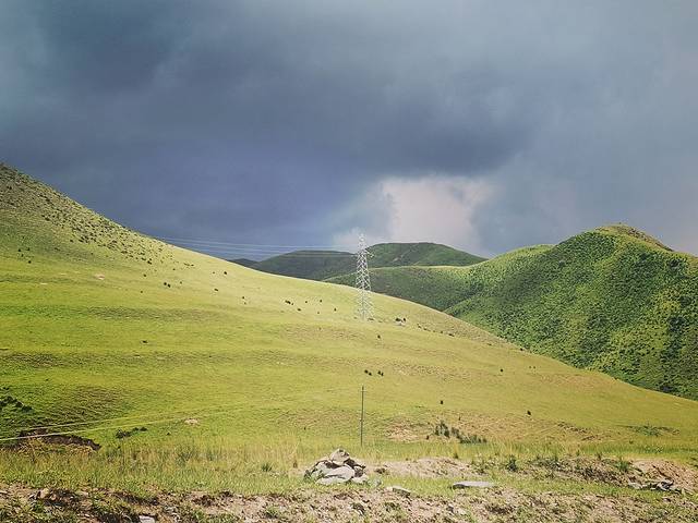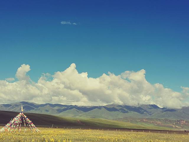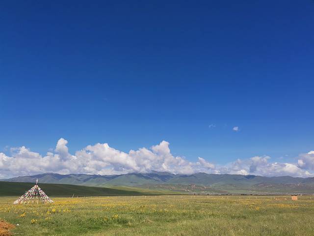 初到甘加就被草原美景震撼到了!甘加草原位于夏河甘加乡,距夏河县以北33公里处,有一条新修的公路相连。甘加草原属于草甸草原,简单形容就像广阔的丘陵上铺着一层厚厚的地毯,那里的草很短很绿,没见过这么绿的草坪,毛茸茸的还夹杂着各色野花,太漂亮了!(手机拍的,照相技术又不好,大家见谅!)