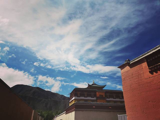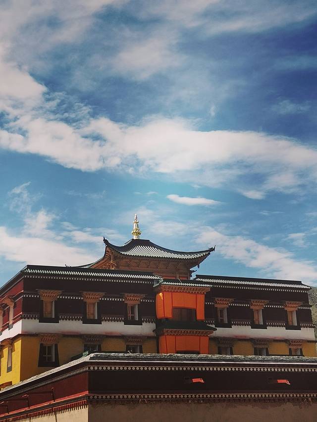 我感觉夏河县就是为了服务拉卜楞寺而建的,从我的住处到拉卜楞寺步行10分钟,非常方便。拉卜楞寺因天下无贼在此取景进入大众视野,它位于甘南藏族自治州夏河县,藏语全称为:“噶丹夏珠达尔吉扎西益苏奇具琅”,意思为具喜讲修兴吉祥右旋寺。简称扎西奇寺,一般称为拉卜楞寺。拉卜楞寺是藏语“拉章”的变音,意思为活佛大师的府邸。是藏传佛教格鲁派六大寺院之一,被世界誉为“世界藏学府”。鼎盛时期,僧侣达到4000余人,寺院坐北向南,占地总面积86.6万平方米,建筑面积40余万平方米,主要殿宇90多座,包括六大学院、16处佛殿、18处昂欠(大活佛宫邸)、僧舍及讲经坛、法苑、印经院、佛塔等,形成了一组具有藏族特色的宏伟建筑群,房屋不下万间。在寺庙外围还有着世界最长的转经桐长廊,全场3公里还多,由2000多个大大小小的转经筒组成。可以说在藏传佛教里拉卜楞寺是天花板之一了。