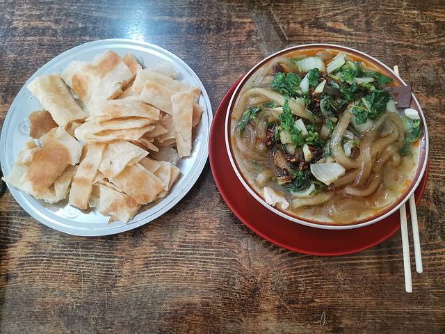 到了夏河正好中午,找个当地小馆子解决一下温饱!牛杂汤和凉皮味道不错,泡着麻花的吃法还挺有特色。
