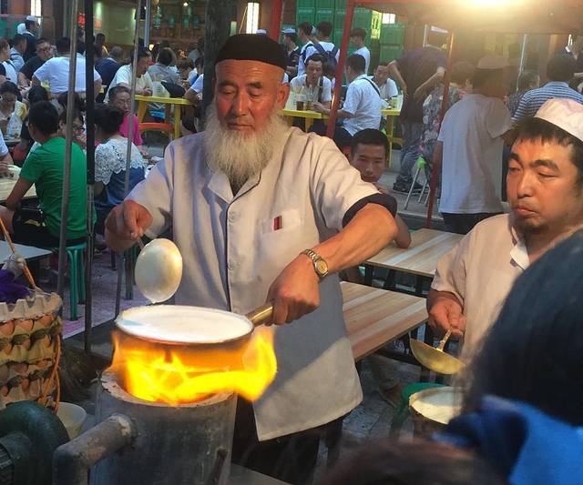 这里单说一下近来非常火爆的网红“鸡蛋牛奶醪糟”,首先我买了一份,味道并不惊艳,可能有小伙伴说我没吃到正宗的,可请你相信我,你在这里吃不到所谓正宗的,每个鸡蛋牛奶醪糟摊位上都挂着正宗招牌,都是老马爷,操勺的都是一个大胡子爷爷。阿牛都疑惑地问我:“是不是整个兰州的大胡子爷爷都在这?”路见不平来碗FAN的主持人Jason也探寻过这件事,好像是第一的做这生意的那位大胡子爷爷由于身体原因不干了,道听途说不足为信,总之大家不要为正不正宗纠结了。