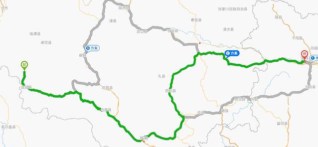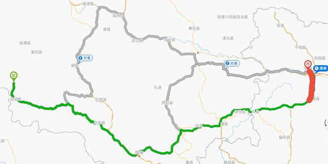 没想到从扎尕那到宝鸡市五百多公里的路开了十个小时,因为有二百多公里是县道国道(从扎尕那到龙南县道国道路况很好,新修的柏油路。)最让我崩溃的是临近目的地还有六七十公里的纯山路,发卡弯的那种!!!就是图中标红的那段,走这段路时已经九点,天已经完全黑了,路上大车特别多,真的崩溃!崩溃!崩溃!大家一定以我为戒!安排行程、选择路线要慎重!