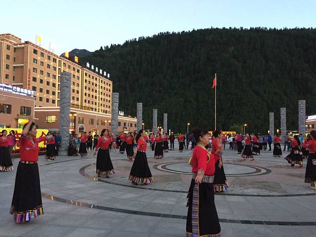 好巧不巧,阿牛妈妈订的酒店,窗外就是我在某某书刷到过的“毛主席在迭部”雕像,雕像正对着的就是藏族大姐们跳“藏族风格的广场舞”的那个广场!哈哈~