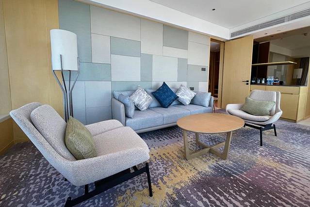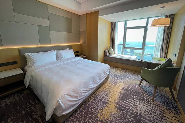 房间面积36-108平方米不等,除了普通客房,还包括12间行政套房,10间亲子套房,2间豪华套房,绝大多数客房均可俯瞰渤海湾美景。