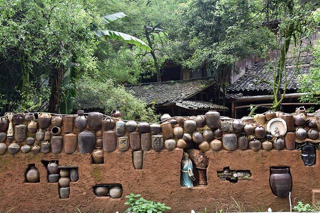 走在村里的街道上,废弃的陶瓷制品和残片堆砌而成的院墙极具特色,路过的小伙伴们纷纷在此拍照。村庄依山傍水,溪流瀑布间,一座座精致的房子错落分布,显得安逸、闲适,住在这里,会有一种世外桃源般的超脱。