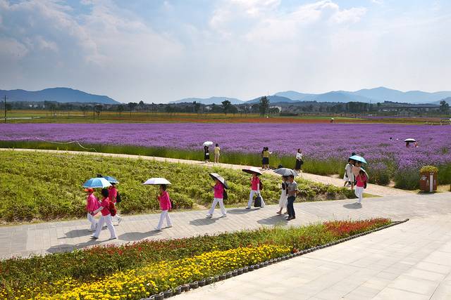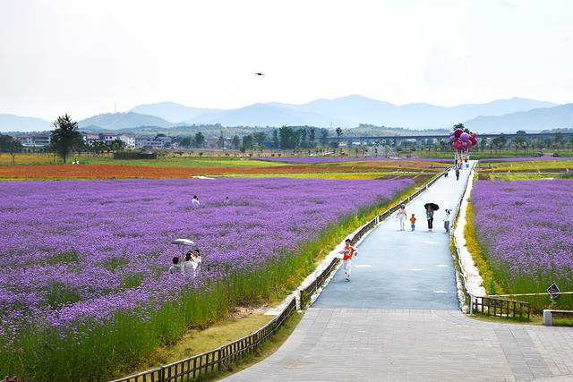 花海总占地面积两千多亩,集“研学教育、趣味游乐、浪漫休闲、银发养生”等体验于一体,打造了一片“春有草、夏有花、秋有果、冬有绿”的花园式休闲观光区。
