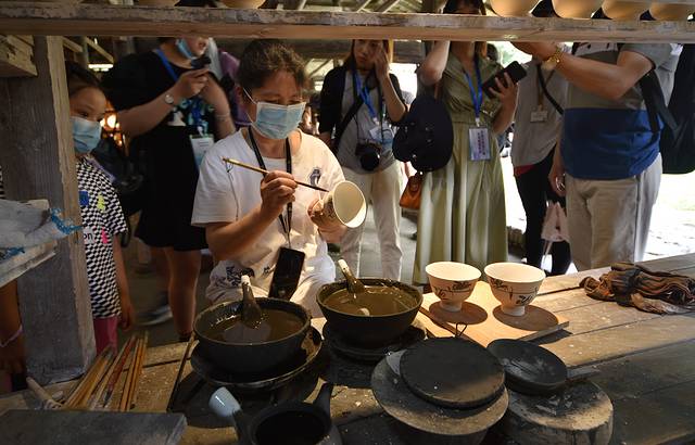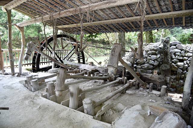 沿着东河溪水参观,水碓将山上开采下来的釉石原料舂成粉状,经过加工成为“熟土”,整个工序溶合了水利动力学、机械学、力学、液体力学和陶瓷工艺学等诸多学科,让我们对古人开发利用自然的聪明才智十分佩服。