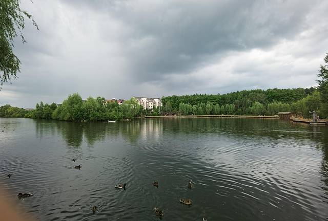 倒是有一些野鸭在湖里戏水,天空中飘来一片黑云,要下大雨了。