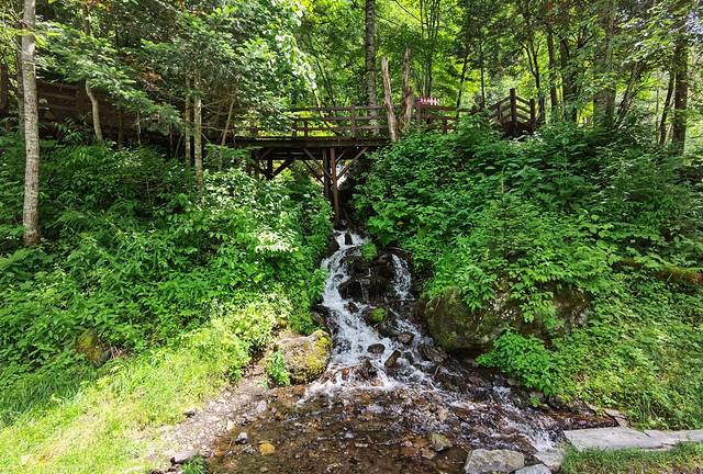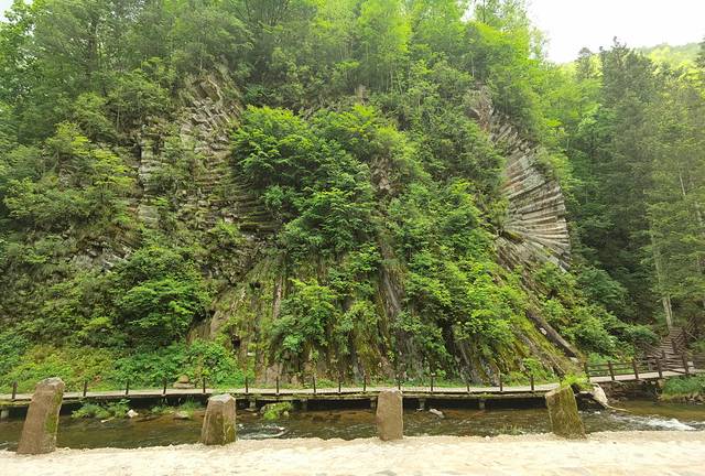 驱车四个小时,中午时分来到了望天鹅,在景区吃过午饭,买了门票,坐上景区小交通,往景区行进。望天鹅就是十五道沟,水文监测站。