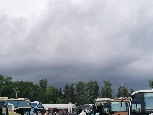 长白山北坡停车场 长白山顶方向乌云密布,回来的游客说山上下了暴雨,有山体滑坡的危险。