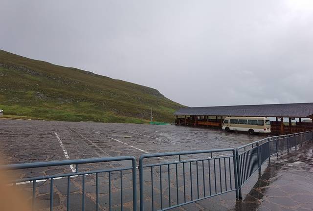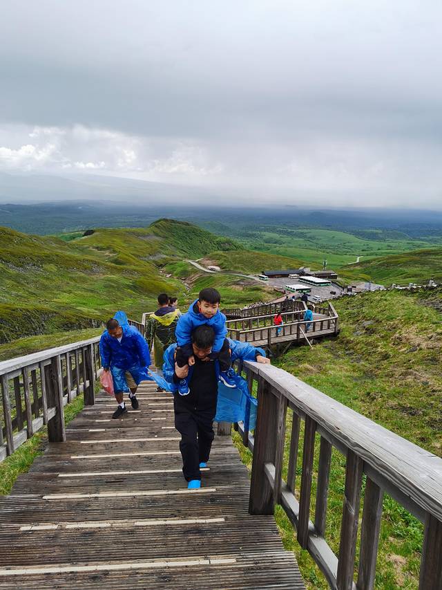 根据计划,第三天去长白山西坡,鉴于第二天的天气原因,第三天7:50前我们就来到长白山西景区游客集散中心,已经有人在排队等待做摆渡车去西坡山门,扫码验码,每人发一张小纸条(到西坡交给工作人员,不用再核验行程码),凭此条做景区公交车去西坡山顶,大约40分钟车程,车走到半道,下了雨,等到山顶游客中心,雨下的更大了,气温更低了,工作人员说天池温度更低,还会下雪,一人买了一件一次性雨衣,给孩子租了一件棉衣,租金50元,押金200元。