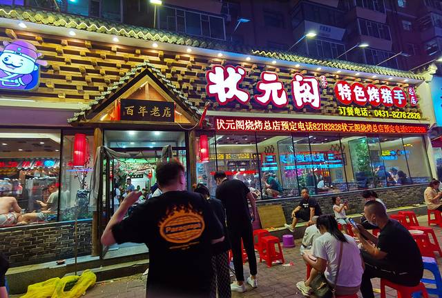 晚上去的状元阁,当地比较火的烧烤店,排队足足有一个半小时,店家不停的杀西瓜,一会都要吃饱了。