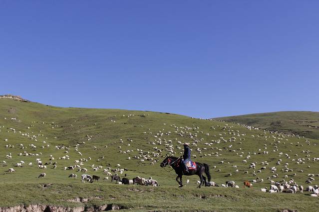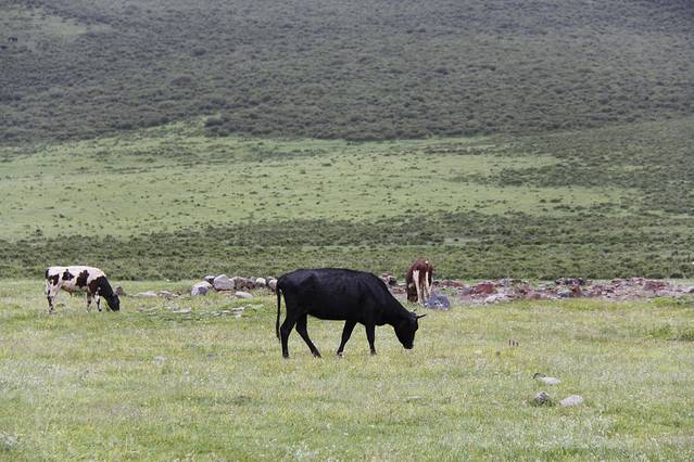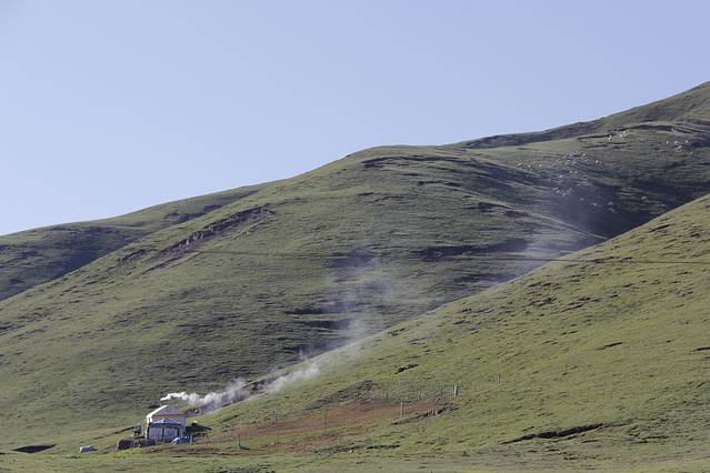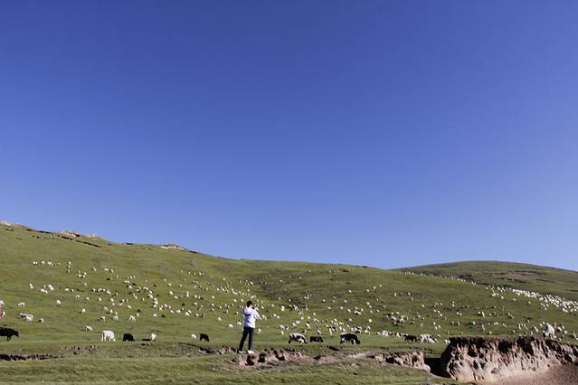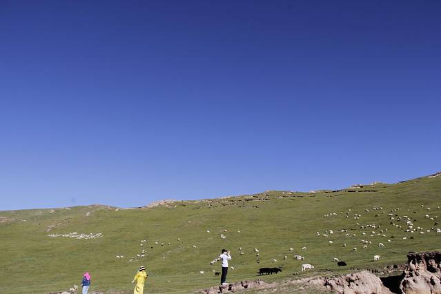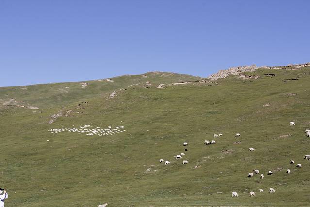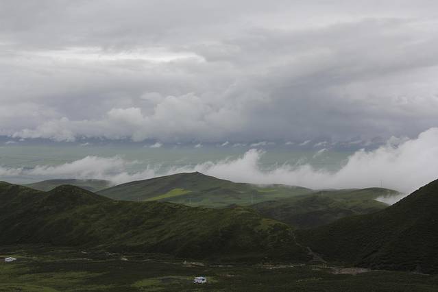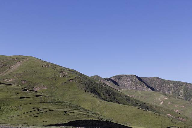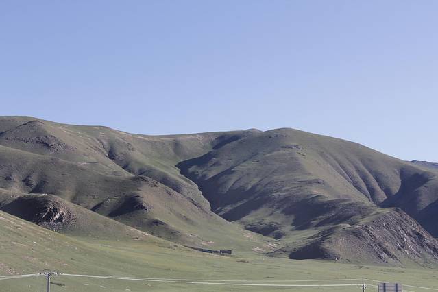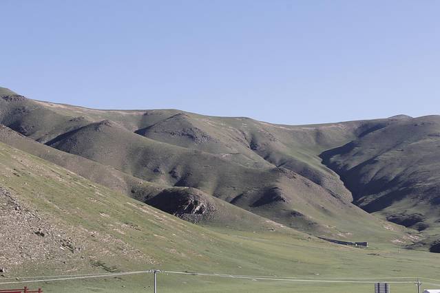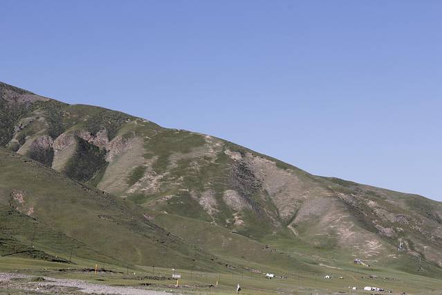 今天是环线的最后一天,虽然只有295公里的路程,但是考虑观看青海湖美景会耽搁一些时间,就早早出发了。在京藏高速行驶一段路以后就转入109国道,开始翻越橡皮山。橡皮山在青海湖的西面,按地理位置归属,属于青海南山山系的一部分,这在青藏高原上已经算是很平常的高度了。因山上道路地基很软,极易下沉。象橡皮一样有弹性,因此而得名橡皮山。 橡皮山海拔4451米(垭口海拔高度3817米),在青海湖与茶卡盐湖之间。橡皮山的坡路较抖,大多是30-40度甚至更陡的陡坡。沿路两边放眼望去,美丽的高山牧场、悠闲吃草的羊群尽收眼底。随着海拔的升高,渐渐有了头晕、肚子不舒服的高原反应,好在不是很强烈,朋友老张略微重一些,停车上洗手间时吐了,拿出车内氧气管吸吸缓解。