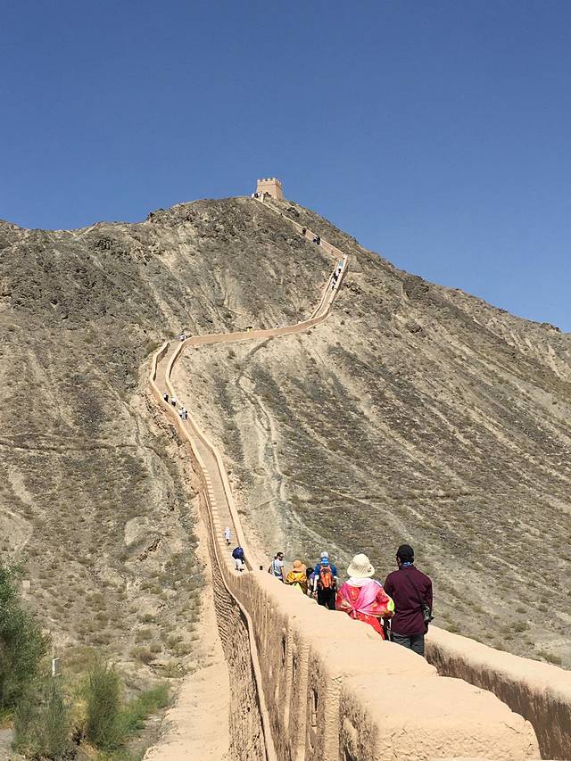 临泽到嘉峪关200公里大约需要行驶两个半小时,快十一点到达嘉峪关悬壁长城景区。嘉峪关景区由悬壁长城、长城第一墩、关城组成,三组为一套110元门票不单卖(有些强买强卖)。悬臂长城因筑于约45°的山脊之上,形似凌空倒挂,因而得名“悬臂长城”。山势陡峭,有些耗费体力,原计划游玩一小时,下来将近两小时了,原计划在县城吃饭,因为时间紧,只能在关城附近嘉峪关村的农家乐吃饭,30元/盘干拌牛肉面有点贵,能让人吃饱味道还行。吃完饭已经13点20分了,长城第一墩因时间不够,旅游评价一般此次行程就舍弃了它。