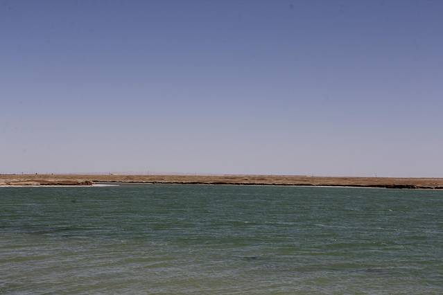 中途路过苏干湖,转弯进去看看。苏干湖(又称苏干淖尔 位于阿尔金山南麓山脚下,总面积119.6平方公里,是甘肃省最大的内陆湖泊。其中,小苏干湖面积约11.6平方公里,大苏干湖面积约108平方公里。属咸水湖平均水深2.84米左右。湖水清澈,候鸟成群,近年被划为候鸟保护区。保护区大门紧锁不让游人进入,我们在景区围墙外往里面看了看,拍拍照片就走了。