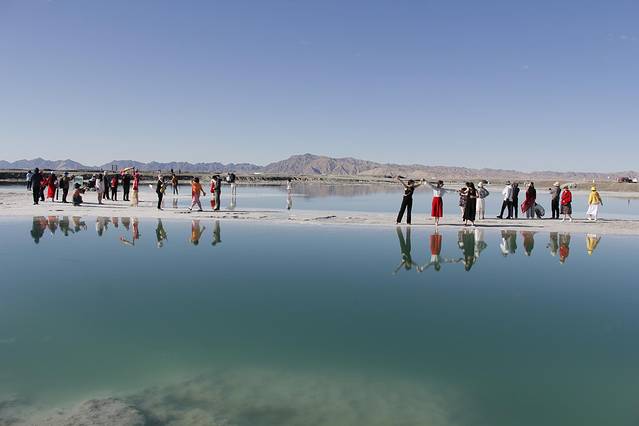 从315国道上柳格高速,路的右边有一个漂亮的湖泊,隔离网被撕破了一个口子可以将车开到湖边。目前没有门票,湖边除了小商贩和照相摊点外什么都没有,网上一搜是小柴旦湖。 小柴旦湖又叫小柴达木湖,位于青海省海西蒙古族藏族自治州,海拔3216米,是青藏高原上的一片湖泊。它位于德小高速和柳格高速的交汇处。出了小柴旦湖,车辆行驶过一条隧道后视线豁然开朗,远处出现房屋建筑,估计就是大柴旦了,高原的能见度好这一眼望去将近16公里。