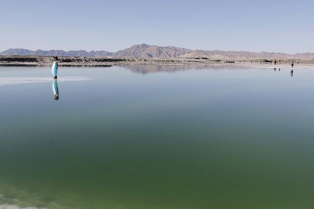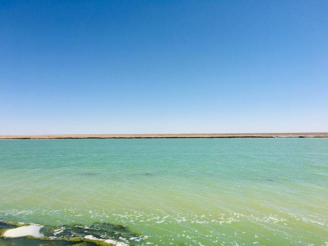 下午五点到达茫崖翡翠湖,茫崖翡翠湖位于青海省海西州茫崖市尕斯湖东部边缘,花土沟镇西南侧,距镇政府所在地约23公里。南依昆仑山,北靠阿尔金山,是一个美丽的人工盐湖,茫崖翡翠湖面积约26平方公里,平均深度0.5米,属于硫酸镁亚型盐湖,目前不要门票,收10元/车停车费。夕阳西下翠绿镜面般的湖水光彩动人,随手即可拍出“大片”。