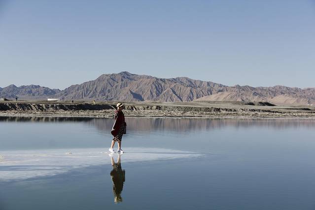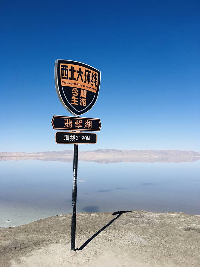 大柴旦翡翠湖是大柴旦独特的盐湖风貌,属硫酸镁亚型盐湖,是海西州第三大人工湖,面积达26多平方公里,出产品质好的钾、镁、锂等多种元素,由于盐床由淡青、翠绿以及深蓝的湖水辉映交替、晶莹剔透,当地人称之为“翡翠湖”。站在大小迥异的湖边,宛如镜面的湖泊倒映着山川、游人美不胜收,只可惜此时再有雪山、白云相映就如人间仙境。如果时间充足的话,大家可以在这多停留一会拍拍美片。