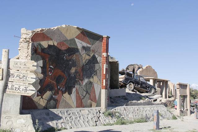 经过一夜休整满血复活,阿克塞-博罗转井影视基地26KM三十来分钟就到了,门票30元/人,景区车费另付,走路十分钟就能到,我们没有坐。博罗转井影视基地位于甘肃省阿克塞哈萨克族自治县博罗转井镇,原是一座石油小镇,因举镇迁移,已被废弃20余年,后改建为影视基地。这里有雪域高原的浩瀚,老城故事的缩影,阿克塞县历史发展的记忆。先后在这里已成功拍摄了《《沙海老兵》、《天将雄师》《西风烈》《九层妖塔》等影视剧,影视基地不大还在不停的修缮中,1-2小时游览。游览时还偶遇一剧组正在拍摄电视剧。
