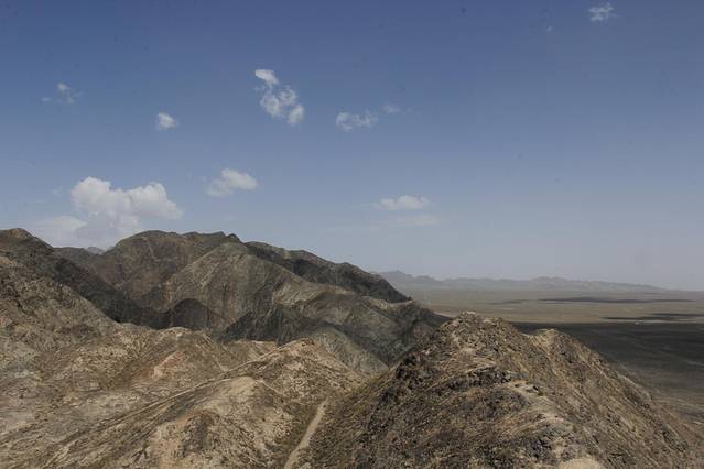 出了影视基地就开始翻越当金山(28KM到达当金山垭口)。当金山(又称挡金山,阻挡金兵)位于甘、青、新三省交界,以西是阿尔金山,以东是祁连山。越过3800米的当金山口,就算进入青海了。从垭口至冷湖镇123KM上放眼望去满眼戈壁,没有一丝绿意和生机。除了过往的自驾车辆,人迹罕至什么都没有,手机也没有信号,这可能就是人们常说的鸟不拉屎的地方。