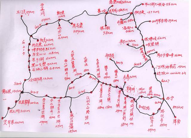 渭南-西宁-达坂山-门源油菜花海-祁连草原-峨堡镇-扁都口-七彩丹霞-临泽县-嘉峪关-敦煌-鸣沙山-莫高窟-阳关-阿克塞哈萨克自治县-阿克塞博罗转井影视基地-当金山-苏干湖(景区关闭)-黑山戈壁-冷湖石油基地-冷湖镇-茫崖翡翠湖-花土沟镇-西台吉乃儿-乌苏特水上雅丹-东台吉纳尔(景区关闭)-小柴旦湖-大柴旦-大柴旦翡翠湖-德令哈-茶卡盐湖-茶卡镇-橡皮山-黑马河-青海湖-倒淌河-拉脊山口-塔尔寺-西宁-渭南。全程4780公里,过路费1210元、加油1810元(一汽大众速腾1.4T)。为什么选择逆时针行走,因为顺时针车辆太多跑不起来,尤其在G227国道路上和青海湖景区,顺时针行驶车是一辆接一辆,超车不易开着太累了!