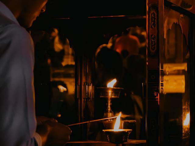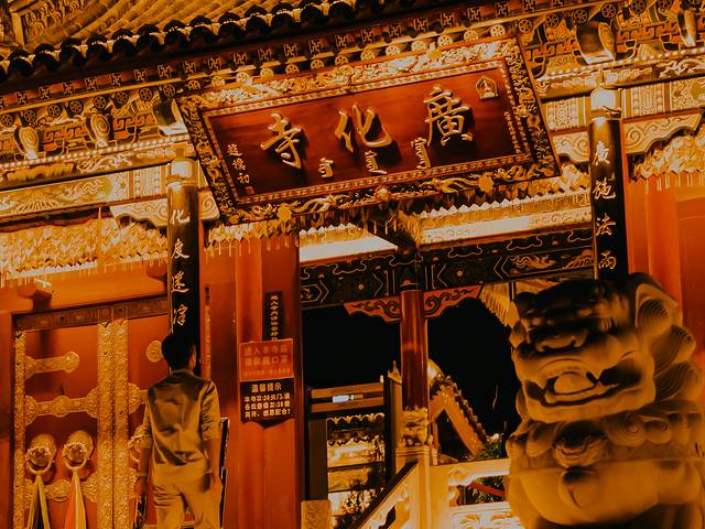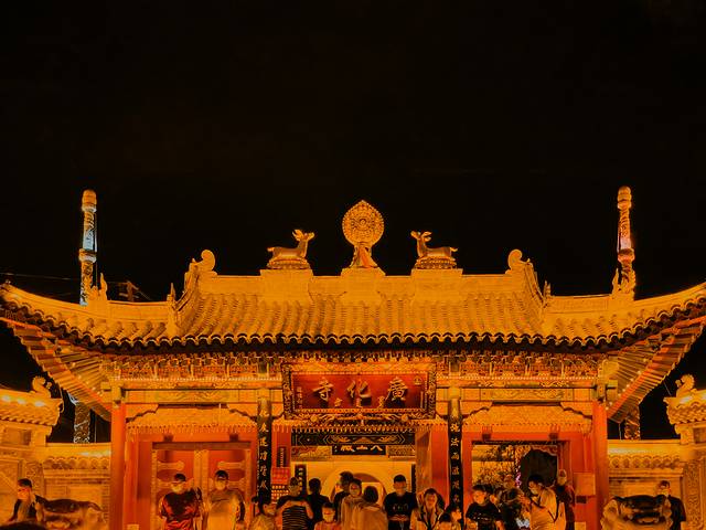 五台山的寺庙大多可以参观到晚上17:30,僧人们要做晚课,所以到点就基本会清场。但五台山的夜晚并不无聊,当夜幕降临,白天游客稀少的广化寺就成了全怀台镇聚焦的璀璨之星。