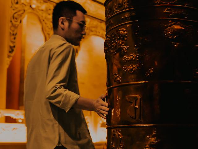 正因为是处藏传佛教寺庙,在广化寺中,能够见到高大的转经筒24时轮转不停。按照藏传佛教的理解,这转经筒每转一圈,即代表念颂经文一次。