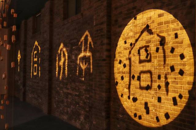 特别要说的是这个文字墙,它很有点意思。不知道是用了哪种技术,反正是可以让这些个文字在屏幕上显示由简到繁再到现代汉字的演变过程,以实物图画的形式,很生动形象。