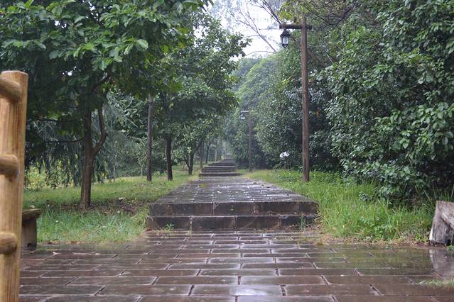 下雨了,也挺好,这样走路也不错。