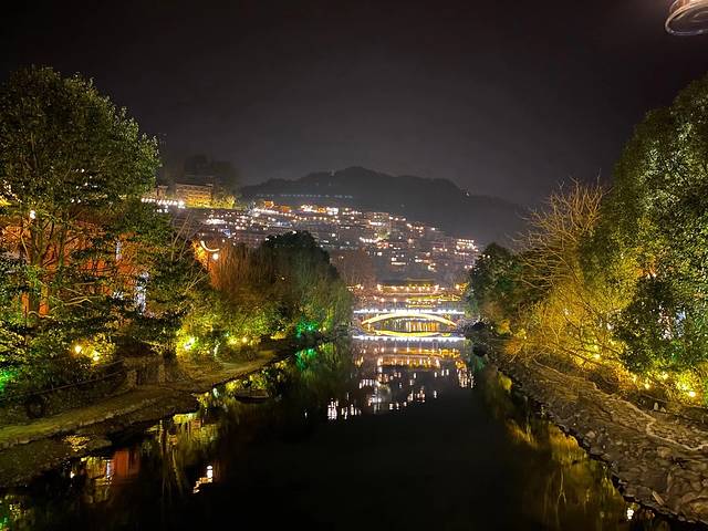 饭后消食溜达,夜幕降临的苗寨又变成了另外一种风情,灯火间的山清水秀,吸引着我又一步步的回到了观景台,就这样在这坐着吹吹风发发呆吧。