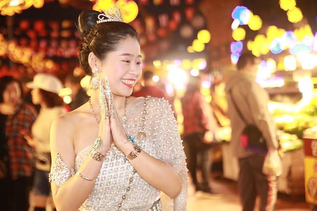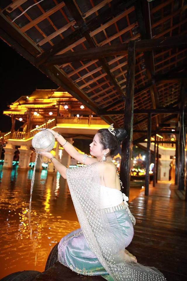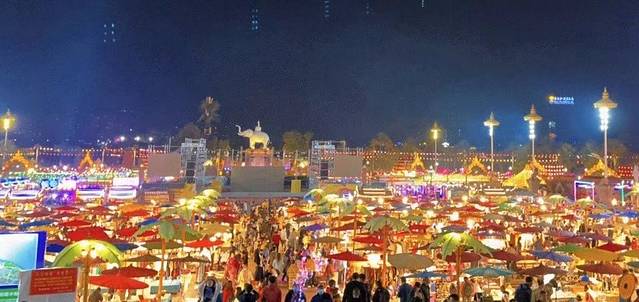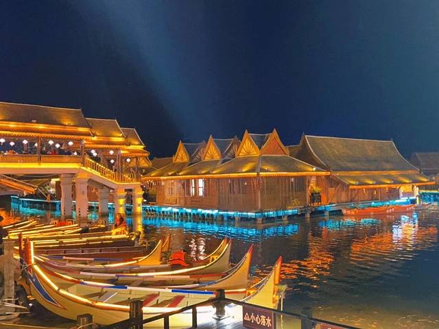 告庄相对来说是特地建设的特色景点了,所以个人觉得还是比较商业化,满大街的傣族服饰,但是溜达到了深夜,当大家相聚而来,灯光慢慢亮起,这儿又成了另外一个人间天堂,而最佳位置就是你站在金佛寺前向下望,底下一片的人间烟火气息,而各群傣族小姐姐也都到达了现场争香比美。各种各种稀奇的傣族美食牵引着你的味蕾,而今天还恰好是平安夜,此刻一眼忽觉国泰民安,一片祥和。