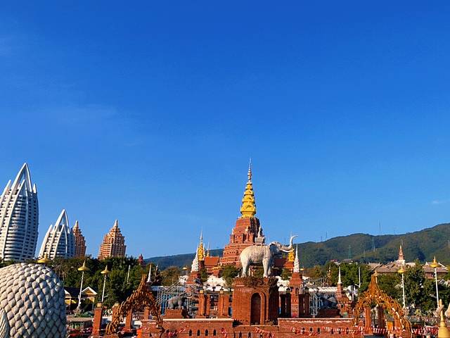 溜达完就赶着打车回了市区,这儿还有一个景点绝对不能错过,那就是来打卡傣王的御花园,和总佛寺相连,里面真的非常的宏伟,热带植物在我看来并不输给原始森林,不过一个更加的原生态,而这个则是更加的金碧辉煌。