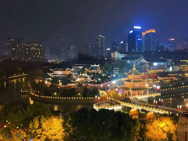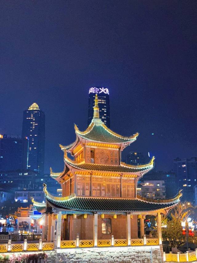 夜晚回到甲秀楼消食,不得不说这城市公园灯光下的微微倒影可真迷人。