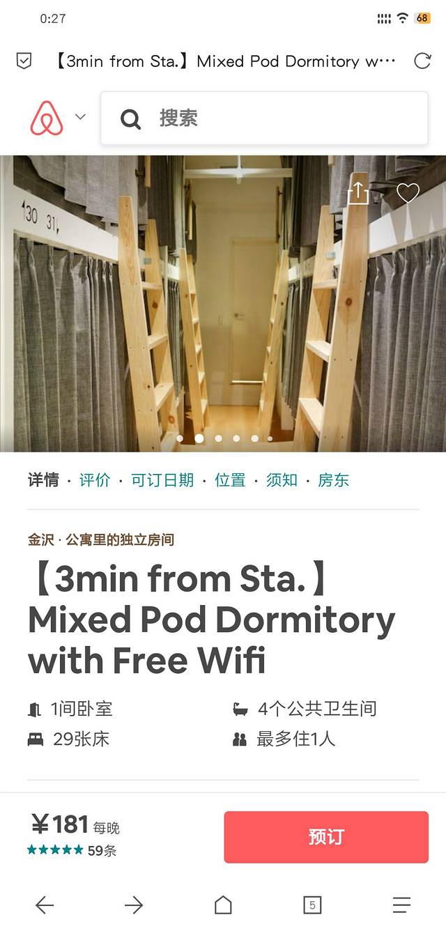 既然写到了胶囊旅馆就详细说下价钱,在我看来胶囊旅馆还是非常实惠的。下图就是我住的房源升价了哈,我住的时候要便宜些,大概145RMB
