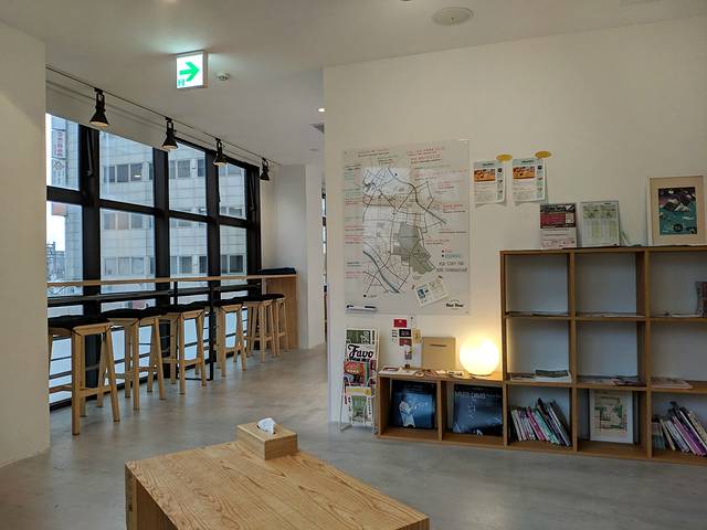 ↓进入旅馆就是公共区域,宽敞明亮,非常舒服。有咖啡或其他饮料零食可以随便享用