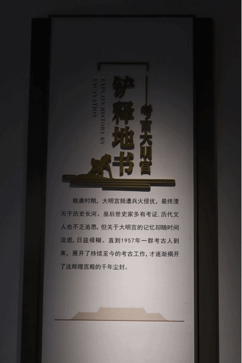 在前厅就看到了“大明宫里看大唐”,因为是在大明宫内的考古探索中心,所以可以知道整个展厅是围绕三个关键词:考古、大明宫、唐文化展开的。