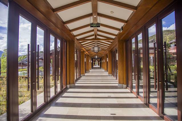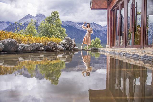 住在这里去游览玉龙雪山国家级风景名胜区 超方便,离游客中心只有2公里,还能直接走到蓝月谷 。不过因为我们来的时候天气一般,加上酒店太舒服,就直接在酒店里躺着看雪山了哈哈。