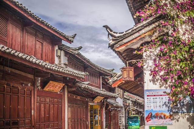 来大研古城,一定要选一家景观好的民宿酒店,看日落和行程,在鲜花簇拥下出门,所以这次我选择的民宿是大研古镇里的听花堂民宿