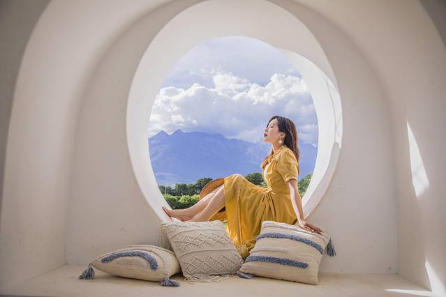 在听花谷拍累了,可以到花园餐厅用餐,这里主要提供西餐和下午茶,雪山和鲜花围绕,环境一流,而且餐厅建筑本身也有很多值得拍摄的角度,例如背后是雪山的圆形窗子、海岛风的鸟巢等等。