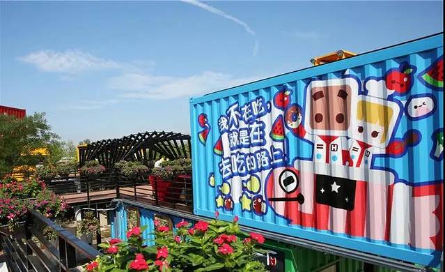 每个集装箱都会不一样,他们在“外壳”上使出浑身解数,香蕉黄、宝石蓝、苹果绿,让光耀美食街充满了不一样的活泼和艺术气息。