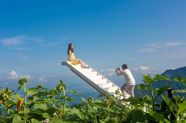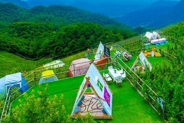 随着古道而下,我们才到达目的地—云中农场,远处是被群山包围着的小城,而我们却逃离了城市,来到了这片秘境,享受短暂的欢愉,花环、天梯、秋天,每一处的设计都值得让人留下回忆的照片。