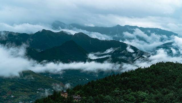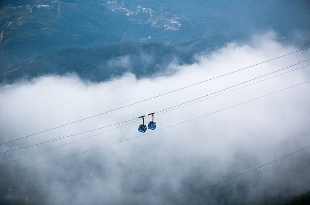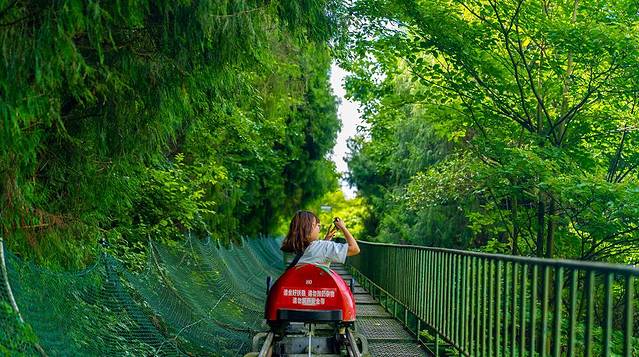 从游客中心到云中农场,我们也算是辗转几次,双人缆车、大车厢似的缆车,还有观光车先坐个遍,沿路的风景也逐渐变得充满神秘感,如果说初入是一场逃离城市热浪的旅程,那么到达云中农场的路上,便是羌族神秘文化的探索。