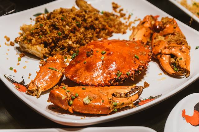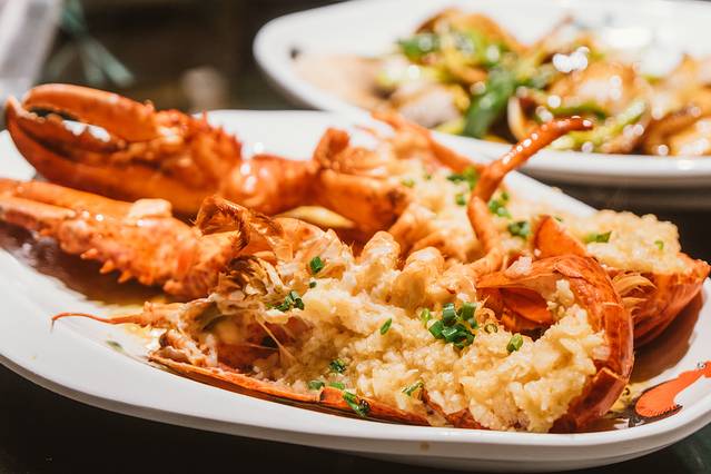 我最最喜欢的是蒜蓉蒸波士顿龙虾和避风塘炒和乐蟹,龙虾肉质紧实有韧劲,配上蒜蓉的香味口感极其丰富,和乐蟹是店里的招牌必点,脂肥膏满,鲜辣诱人,吃辣的小伙伴一定不要错过!