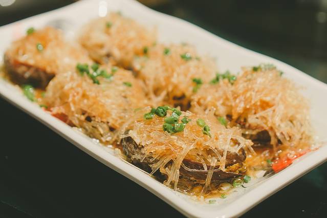 白灼基围虾新鲜清甜,粉丝蒸鲍鱼和粉丝蒸扇贝都巨大一个,吃起来非常过瘾。
