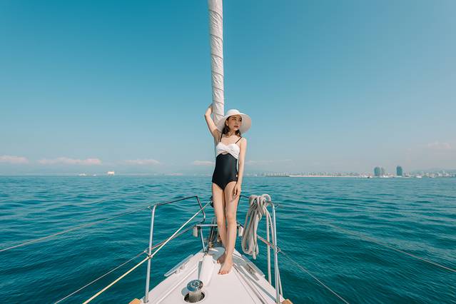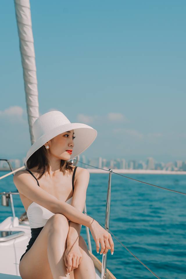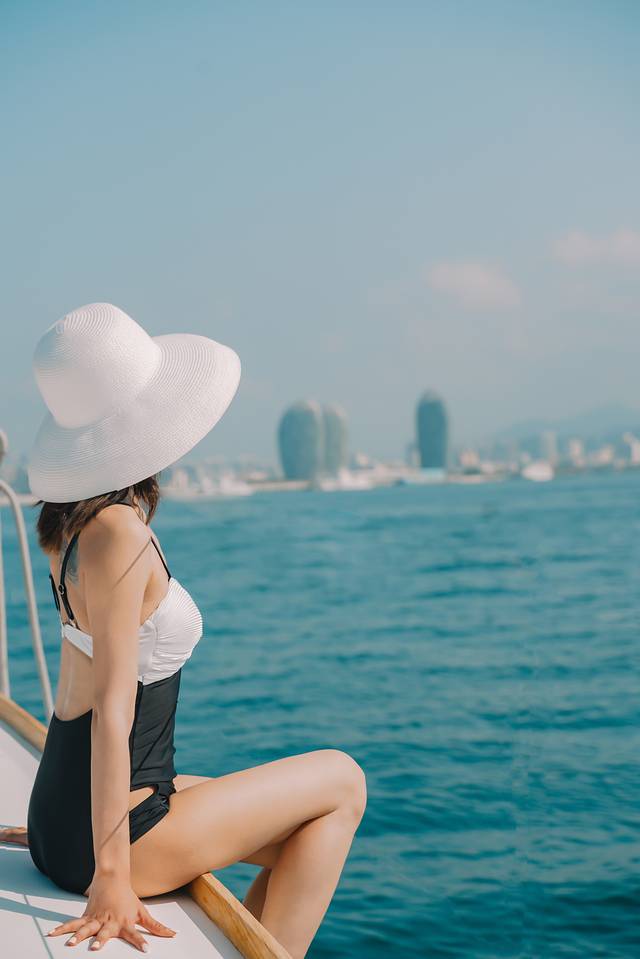 游艇准时出发,速度渐渐加快,两边的海面上翻起了好看的白色浪花。来到海的中央,游艇会在这里停留一会,可以进行一些海上项目比如摩托艇、潜水、船尾冲浪等等,想要拍照的仙女们也可以趁着这个时候疯狂的拍起来。