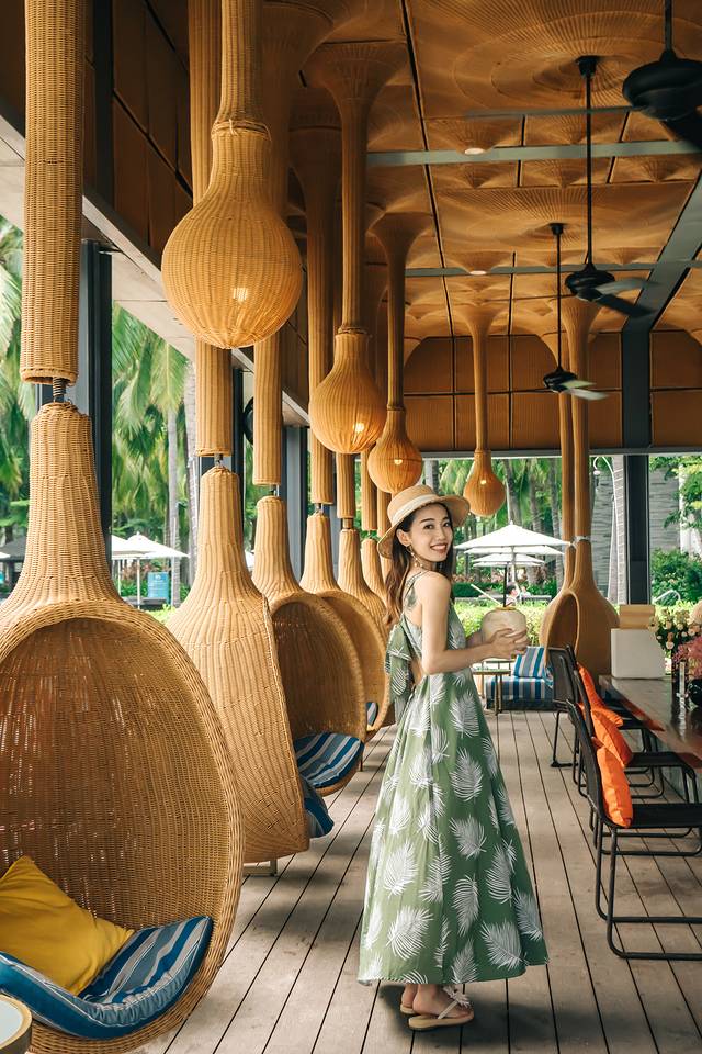 开放式的沙滩吧里用的是鸟笼一样的吊篮座位,好看又有趣,满满的巴厘岛度假感。